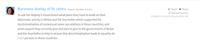 I can firmly say, When I compare Belize to other Commonwealth countries, on how they responded to the LGBT debate, our government has been constructive and responsible. It did not threaten our freedom of movement, association or expression. It could have created an official position of harassment, jailing, advance administrative tactics to shut us down, incited hate or sustained surveillance. It did not! What it did do, was allow the cultural debate to happen in the media, it respected our right to seek redress in the Court. In addition, left open a social and political conversation that was reflective in national debate about our Gender Policy. What has Belize gotten for our engagement in London over the years. Well, I can point out to a few words on Twitter from Baroness Anelay and Lord Black of Brentwood in 2015 and 2018 offering questions to parliament. along with Lord Ahmad of Wimbledon on separate occasions. The intended result is about increasing engagements with the local UK high Commission.